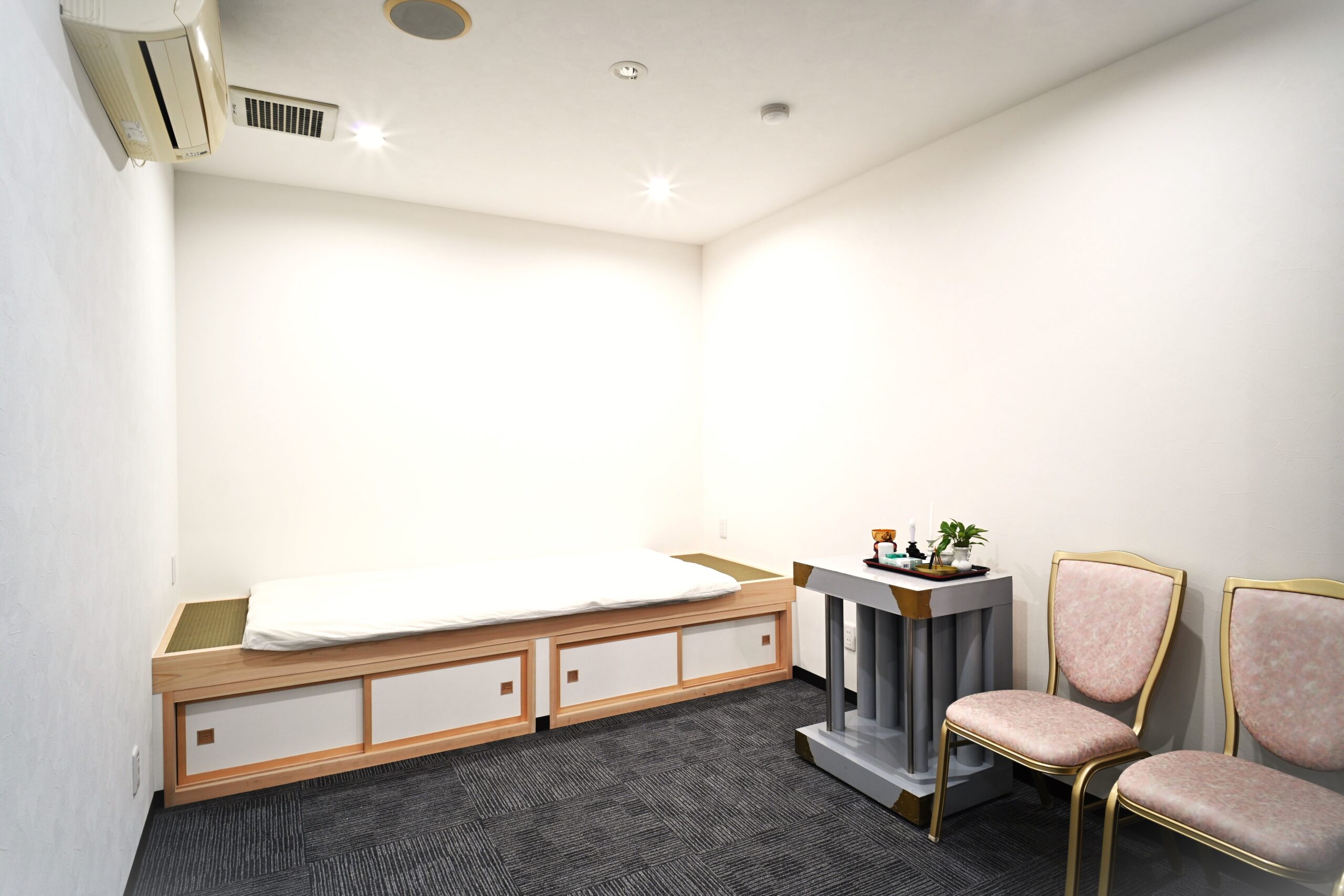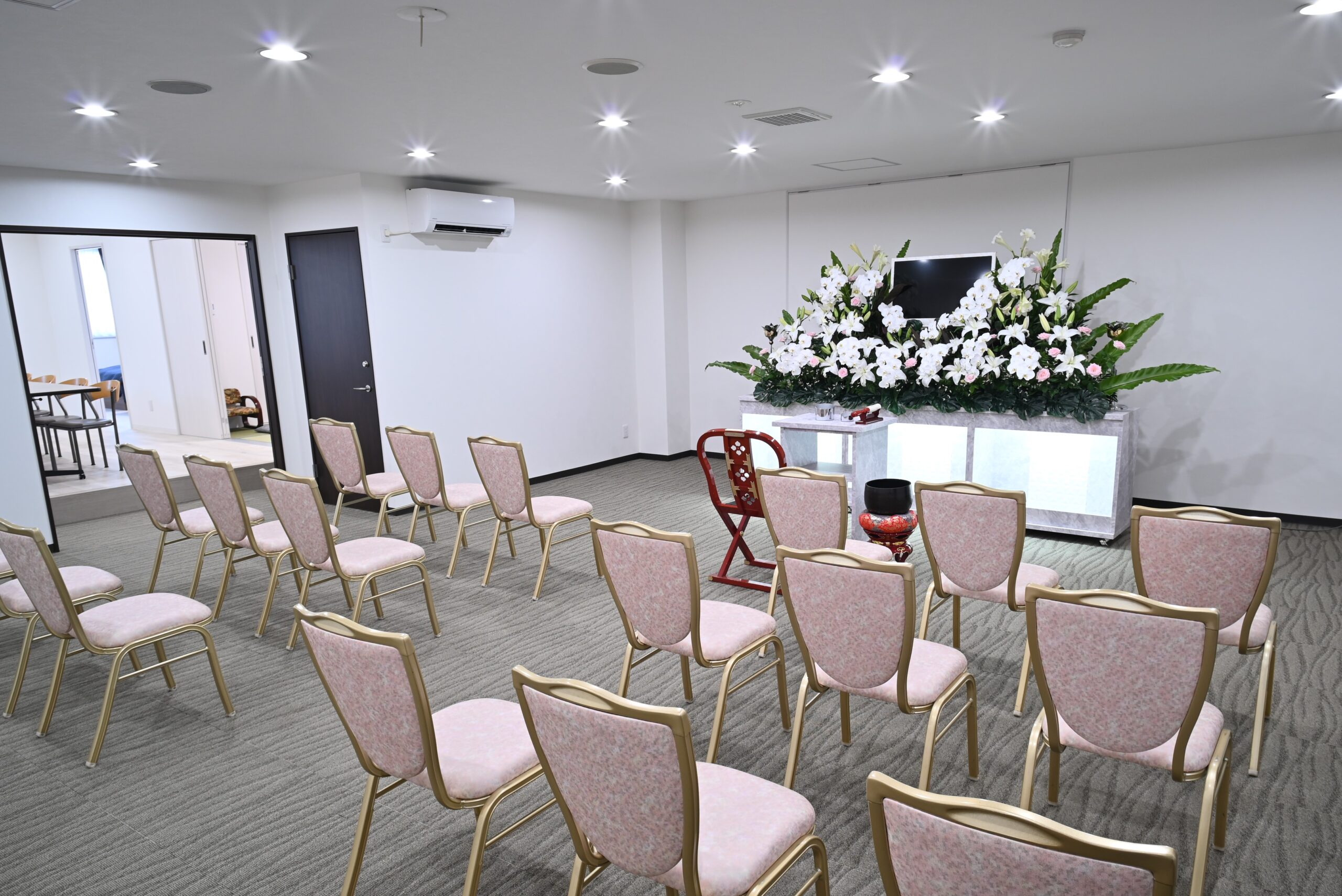 家族葬向けにリニューアルした式場。少人数からでも利用が可能。貝塚市役所近く、貝塚中央線に面しており参列者様が迷わず来れる立地で選ばれています。2022年に、家族葬にご利用いただきやすい『家族葬専用ホール』へと生まれ変わりました。御葬儀だけに限らず、満中陰法要や周忌法要にもゆったりとお使い頂けます。 パドマホール貝塚の式場案内 プライベートホール20 式場に20席 ドアを閉めればクローズなスペースになり、プライベートを保ったまま御葬式が行えます。 プライベートホール10 10名様を目安にご利用いただけます。 式場と控室が使いやすい配置になっています。 安置室 病院から直接パドマホールへ搬送可能です。高齢者住宅や施設から早く移動しなければならない場合にも便利にご利用ください。 法要室 初七日法要、満中陰法要、年忌法要もお任せください。全てが揃っているので式場ですれば安心です。